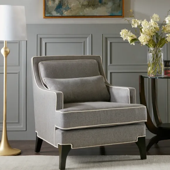 Kick Back And Relax In Our Comfortable Gray And Ivory Trim Upholstered Armchair. You’Ll Love Lounging And Reading Your Favorite Book In This Stunning Armchair. Chair Measures 29.15L X 33.85W X 32.85H In.; Seat Measures 17.5H In.Crafted Of Solid Wood, Plywood, And Polyesterlegs Crafted Of Birch Wood; Arms Crafted Of Solid Wood And Plywoodupholstered In A 100% Polyester Gray Fabricback Fill Material Crafted Of 90% Polyurethane Foam And 10% Polyester Fiberblack Noir Leg Finishupholstered Seat And Backrest With In Gray Fabric With Ivory Weltingremovable Seat Cushion And Back Support Pillowseat Cushion Is Not Reversibleweight: 37.5 Lbs.Weight Capacity: 300 Lbs.Assembly Requirednot Intended For Commercial Usecare: Spot Clean Only.This Item Is Available At Kirklands.Com Only, Not Available In Stores. Please Note: This Item Cannot Be Shipped To Apo/Fpo Addresses.