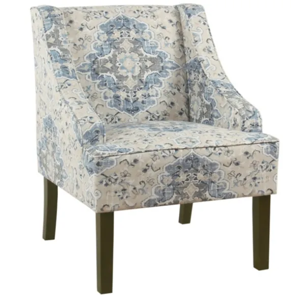 Create A Cozy Seating Area In Your Living Space With The Help Of Our Blue Antique Medallion Swoop Arm Accent Chair. Relaxed Yet Refined, You’Ll Love This Traditional Medallion Print In A Creamy White And Regal Blue Hue.Chair Measures 27.75L X 25W X 33.25H In.; Seat Height Measures 19.5H In. Crafted With A Sturdy, Wooden Frame Upholstered In Cotton Fabric Medium Firm Cushion Support Gray Washed Leg Finish Contoured Modern Arms Upholstery Features Antique Medallion Pattern Hues Of Blue And Ivory Weight Capacity: 250 Lbs. Some Assembly Required Not Intended For Commercial Use Care: Spot Clean Only.This Item Is Available At Kirklands.Com Only, Not Available In Stores. Please Note: This Item Cannot Be Shipped To Apo/Fpo Addresses. Warning:This Product Can Expose You To Chemicals Including Di-(2-Ethl Hexyl) Phthalate Which Is Known To The State Of California To Cause Cancer And Birth Defects Or Other Reproductive Harm. For More Information Go Towww.P65Warnings.Ca.Gov .