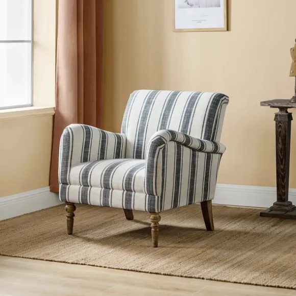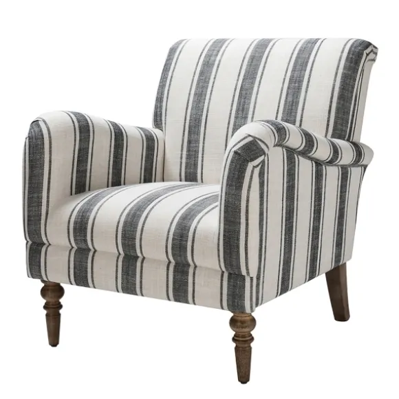 Our Black White Carved Slope Stripe Accent Chair Is The Perfect Addition To Any Space. You’Ll Love The Luxurious Upholstery And Design Of This Comfy Chair. Chair Measures 35L X 29.5W X 34H In.; Seat Measures 17.5H In.Crafted With A Wooden Framebrown Leg Finishupholstered In Black And White Striped Fabricsloped Armrest Designweight: 31.5 Lbs.Weight Capacity: 250 Lbs.Some Assembly Requirednot Intended For Commercial Usecare: Spot Clean Only.This Item Is Available At Kirklands.Com Only, Not Available In Stores. Please Note: This Item Cannot Be Shipped To Apo/Fpo Addresses.
