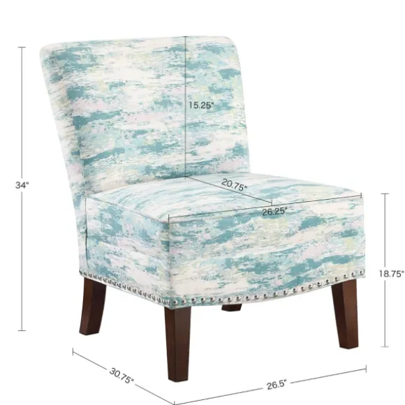 The Blue Abstract Armless Accent Chair Will Perfectly Complement Your Modern Coastal Decor! You’Ll Love How Its Bright White And Blue Hues Refresh Your Living Room. Chair Measures 26.5L X 30.75W X 34H In.; Seat Measures 18.75H In.Crafted Of Wood And Plywoodhigh-Density Foam Fillupholstered In A Polyester Fabric With An Abstract Designespresso Wood Leg Finisharmless Designaccented With Nailhead Trimweight Capacity: 300 Lbs.Some Assembly Requirednot Intended For Commercial Usecare: Spot Clean Only.This Item Is Available At Kirklands.Com Only, Not Available In Stores. Please Note: This Item Cannot Be Shipped To Apo/Fpo Addresses.
