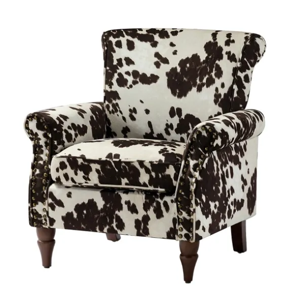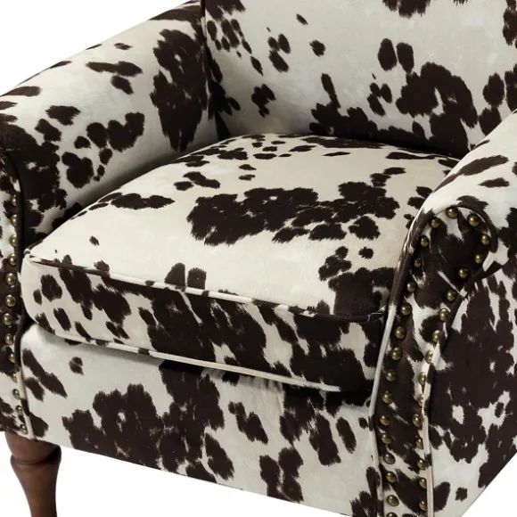 This Brown Cow Print Upholstered Accent Chair Is The Perfect Way To Incorporate Farmhouse-Glam Into Your Decor. With Its…