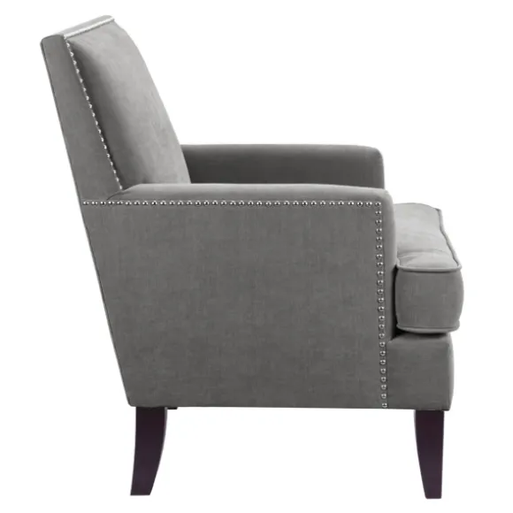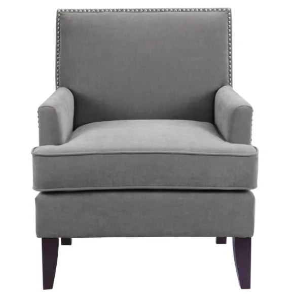 The Gray Charlie Track Arm Club Accent Chairis A Charming Addition To Your Living Room! Its Traditional, Antique Inspired Style Will Give Your Home A Sophisticated Style. Pair It With A Throw Pillow To Complete The Look.Chair Measures 29L X 30W X 35.25H In.; Seat Height: 16.25 In.Crafted With A Wooden Framemerlot Birch Wood Finish Legsupholstered In Gray Fabricsilver Nail Head Detailstrack Armchair Designfeatures High Density Foam Cushionsweight Limit: 250 Lbs.Some Assembly Requirednot Intended For Commercial Usecare: Spot Clean Only.This Item Is Available At Kirklands.Com Only, Not Available In Stores. Please Note: This Item Cannot Be Shipped To Apo/Fpo Addresses.
