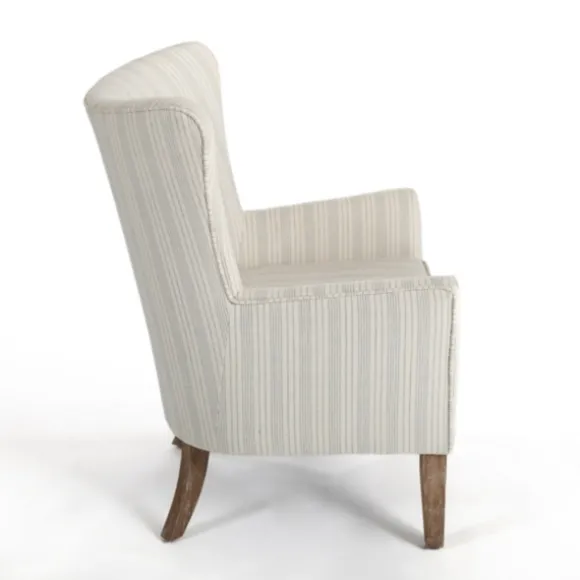 Kirkland’s Home Accent Chairs-Light Blue Stripe Wingback Accent Chair