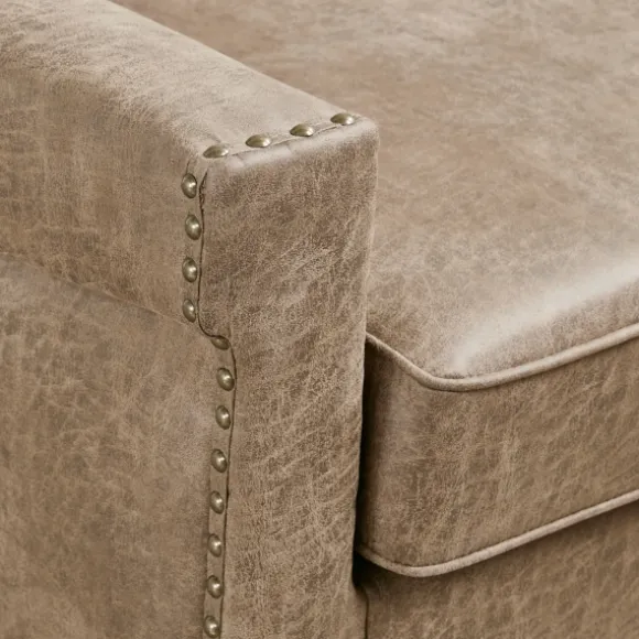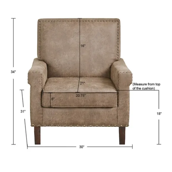 This Brown Martha Stewart Faux Leather Accent Chair Will Make A Charming Addition To Any Room. Its Leather Finish And Comfy Cushions Will Give Your Space A Homey Feeling. Its Contemporary Style Will Elevate Your Space! Chair Measures 30L X 31W X 34H In.; Seat Measures 18H In.Crafted Of Faux Leather With A Wood And Wood Composite Framewalnut Leg Finishupholstered In Brown Polyurethane Leatherfeatures Nailhead Trimweight Capacity: 300 Lbs.Assembly Requirednot Intended For Commercial Usecare: Spot Clean Only.This Item Is Available At Kirklands.Com Only, Not Available In Stores. Please Note: This Item Cannot Be Shipped To Apo/Fpo Addresses.