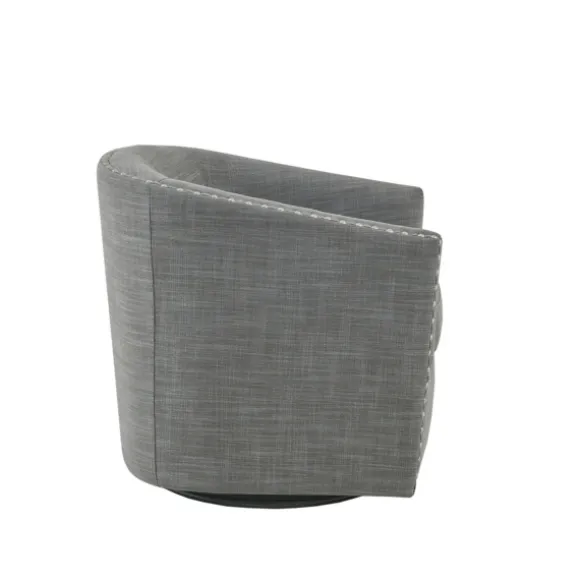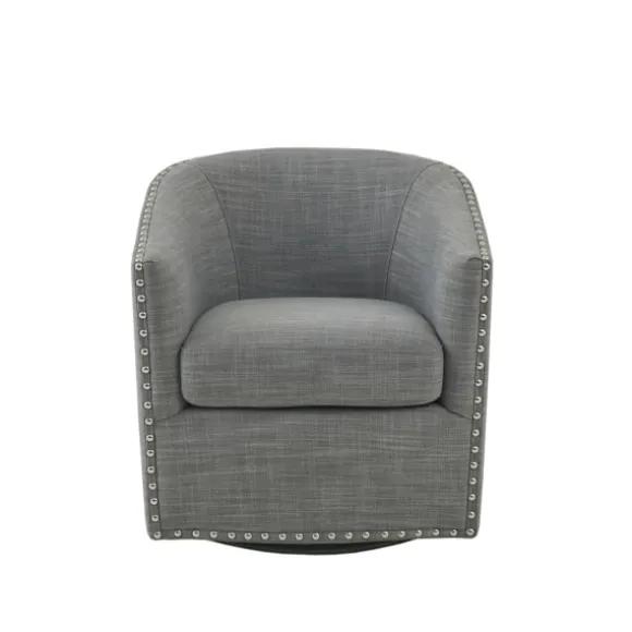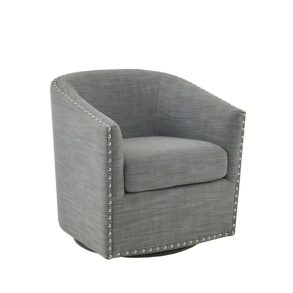 Turn Your Living Room Into The Chic Oasis Of Your Dreams With This Gray Nailhead Swivelling Barrel Accent Chair! You’Ll Love How The Simple Design Looks In Your Modern Space. Chair Measures 28L X 32.3W X 30.5H In.; Seat Height: 20.5 In.Crafted With A Wooden Framepolyester And Linen Upholstery With Foam Fillheathered Gray Fabric Finishaccented With Silver Nail Headsfeatures A Barrel Design With A Swivel Baseweight Capacity: 300 Lbs.No Assembly Requirednot Intended For Commercial Usecare: Spot Clean.This Item Is Available At Kirklands.Com Only, Not Available In Stores. Please Note: This Item Cannot Be Shipped To Apo/Fpo Addresses.