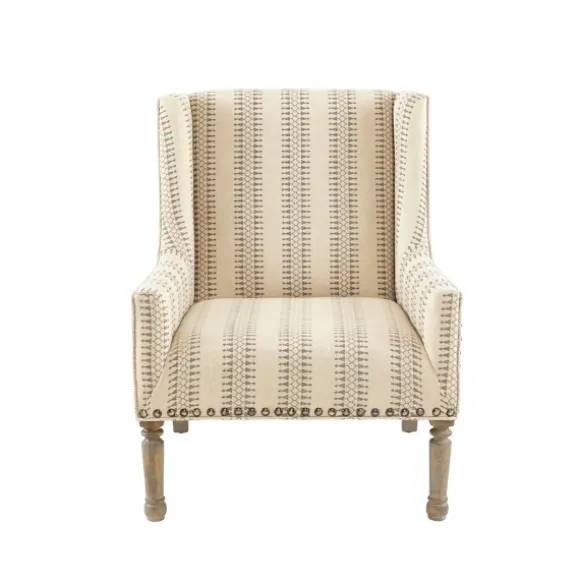 The Stunning Natural Cara Stripe Accent Chair Will Add A Timeless Touch To Your Home Decor. Its Neutral Stripe Material And Classic Design Will Add So Much Character To Your Home. Drape A Solid Throw Blanket Over The Back For A Sophisticated Look.Chair Measures 28.5L X 31.25W X 31H In.; Seat Height: 20.75 In.Crafted With A Wooden Framereclaimed Natural Wood Finish Legsupholstered In Ivory And Tan Stripe Fabricbronze Nail Head Detailsraised Armchair Designfeatures High Density Foam Cushionsweight Limit: 300 Lbs.Some Assembly Requirednot Intended For Commercial Usecare: Spot Clean Only.This Item Is Available At Kirklands.Com Only, Not Available In Stores. Please Note: This Item Cannot Be Shipped To Apo/Fpo Addresses.