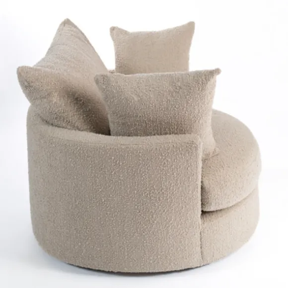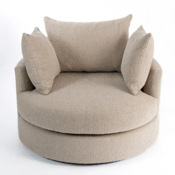 Featuring A Modern Shape And Soft, Cozy Texture, This Round Sand Boucle Swivel Accent Chair Will Give Your Space A Lovely Update. Its Comfy Design Will Quickly Become Your Favorite Spot To Cuddle Up With A Good Book Or Movie! Chair Measures 44.3L X 42.5W X 34.6H In.; Seat Measures 17.3H In.Crafted With A Metal, Wood, And Wood Composite Frameupholstered In Sand Boucle Fabricfoam Fillround Shapefeatures Three (3) Pillow Cushionsweight Capacity: 225 Lbs.Not Intended For Commercial Usecare: Spot Clean Only.Contact Your Local Kirkland’S Store For Availability. Quantities And Selection May Vary By Location.