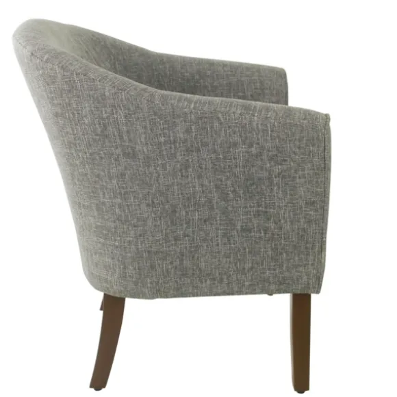 Bring A Modern Accent To Any Space With This Slate Gray Accent Chair. Its Rounded Barrel Design Is Perfect For Bringing Comfort And Style To Your Space. You’Ll Love How Its Heathered, Slate Gray Fabric Looks In Any Room In Your Home! Chair Measures 26L X 28W X 33H In.; Seat Height Measures 19.5H In. Crafted With A Wooden Frame Brown Leg Finish Upholstered In A Slate Gray, Heathered Tweed Fabric Features A Rounded Barrel Silhouette Weight: 27.9 Lbs. Some Assembly Required Weight Capacity: 250 Lbs. Not Intended For Commercial Use Care: Spot Clean Only A With Damp Cloth.This Item Is Available At Kirklands.Com Only, Not Available In Stores. Please Note: This Item Cannot Be Shipped To Apo/Fpo Addresses. Warning:Cancer And Reproductive Harm – For More Information Go Towww.P65Warnings.Ca.Gov .