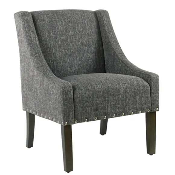 Add A Modern Accent To Your Space With This Slate Gray Swoop Accent Chair! Its Sleek Design Is Accented By Industrial Nailhead Trim, Giving This Cozy Piece A Bit Of Edge. You’Ll Love Its Cool Gray Color.Chair Measures 24.75L X 27.5W X 35.25H In.; Seat Height Measures 19.5H In. Crafted With A Wooden Frame High-Density Foam Fill Upholstered In A Slate Gray Fabric Gray Washed Espresso Leg Finish Contoured Arms Large Silver Nailhead Trim Accents Some Assembly Required Weight Capacity: 250 Lbs. Not Intended For Commercial Use Care: Spot Clean Only.This Item Is Available At Kirklands.Com Only, Not Available In Stores. Please Note: This Item Cannot Be Shipped To Apo/Fpo Addresses.