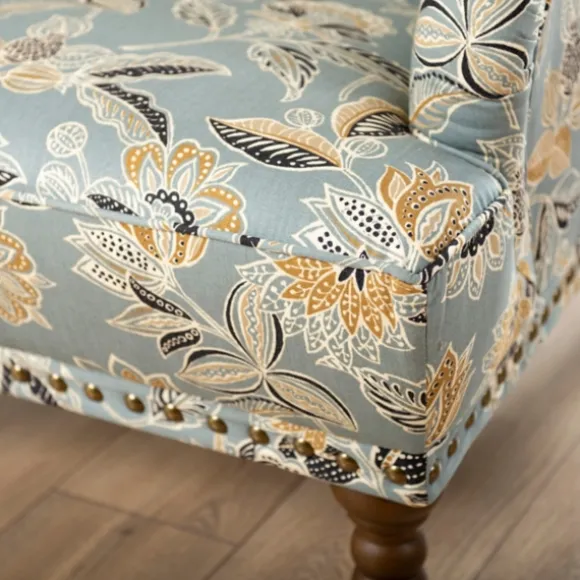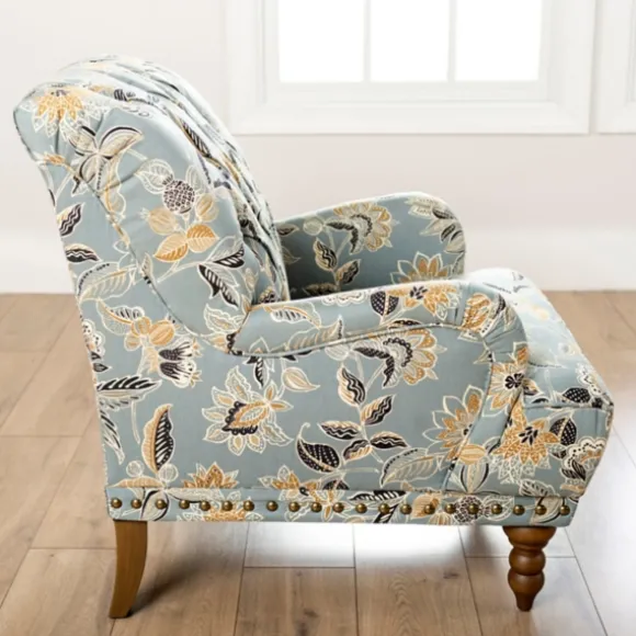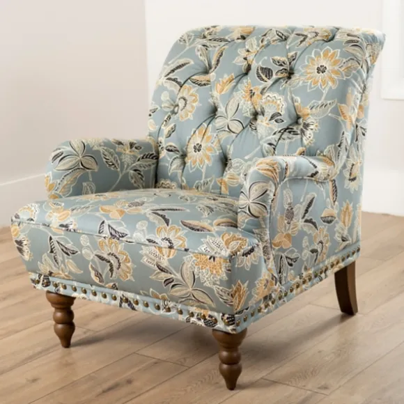 Comfort Has Never Looked So Refreshing! Featuring Golden Yellow Details And A Nailhead Trim, Our Teal Rebecca Tufted Accent Chair Is The Perfect Accent For Your Living Room. Chair Measures 36.5L X 30W X 36H In.; Seat Height: 18 In.Crafted With A Wood Composite Frame, Birchwood Legs, And Fabricbrown Leg Finishfeatures A Floral Patternaccented With Button-Tufted Details And A Nailhead Trimhues Of Blue, White, Yellow, Tan, And Blackweight Capacity: 225 Lbs.Some Assembly Requirednot Intended For Commercial Usecare: Spot Clean Or Professional Clean Only.This Item Is Available At Kirklands.Com Only, Not Available In Stores.