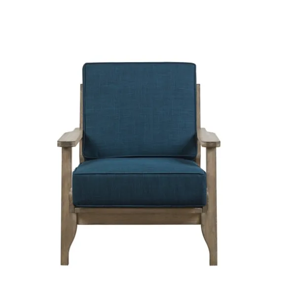 Relax In Comfort And Style With This Blue Upholstered Driftwood Accent Chair. Its Laid-Back Design And Rustic Wood Finish Make It The Perfect Accent For Farmhouse Or Cottage Decor! You’Ll Love How It Refreshes Your Space! Chair Measures 28.5L X 35.5W X 34H In.; Seat Measures 18H In.Crafted With A Solid Wood Framegray Driftwood Frame Finishcushions Are Upholstered In Blue Polyester Fabric With Foam Fillladderback Designcushions Are Removableweight Capacity: 300 Lbs.Some Assembly Requirednot Intended For Commercial Usecare: Spot Clean Only.This Item Is Available At Kirklands.Com Only, Not Available In Stores. Please Note: This Item Cannot Be Shipped To Apo/Fpo Addresses.