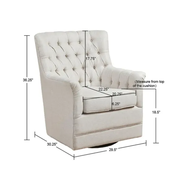 Create A Cozy And Casually Charming Reading Nook Using This White Upholstered Tufted Swivel Accent Chair! The Tufted Button Detailing And Neutral Hue Brings A Traditional Flair To Any Space. Chair Measures 29.5L X 30.25W X 36.25H In.; Seat Measures 18.5H In.Crafted Of Wood, Metal, And Polyesterhigh-Density Foam Fillupholstered In A White Polyester Velvet Fabricbutton Tufted Back Designblack Metal Swivel Glider Base360 Swivel Designno Assembly Requirednot Intended For Commercial Usecare: Spot Clean Only.This Item Is Available At Kirklands.Com Only, Not Available In Stores. Please Note: This Item Cannot Be Shipped To Apo/Fpo Addresses.