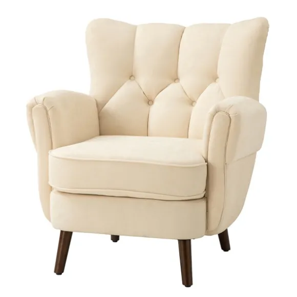 After A Long Day, Grab Your Favorite Throw And Lounge In This Ivory Upholstered Tufted Wingback Accent Chair! Inspired By Mid-Century Modern And Danish Design, It’S Sure To Make A Grand Statement. Chair Measures 32L X 33.5W X 34H In.; Seat Measures 18.5H In.Crafted Of Upholstery Material And Solid Woodhigh-Density Foam Fillsprings Are Built Into Frame For Added Supportupholstered In An Ivory Fabricbrown Leg Finishwingback Designbutton Tufted Backweight Capacity: 250 Lbs.Some Assembly Requirednot Intended For Commercial Usecare: Dust With A Soft, Dry Cloth.This Item Is Available At Kirklands.Com Only, Not Available In Stores. Please Note: This Item Cannot Be Shipped To Apo/Fpo Addresses.