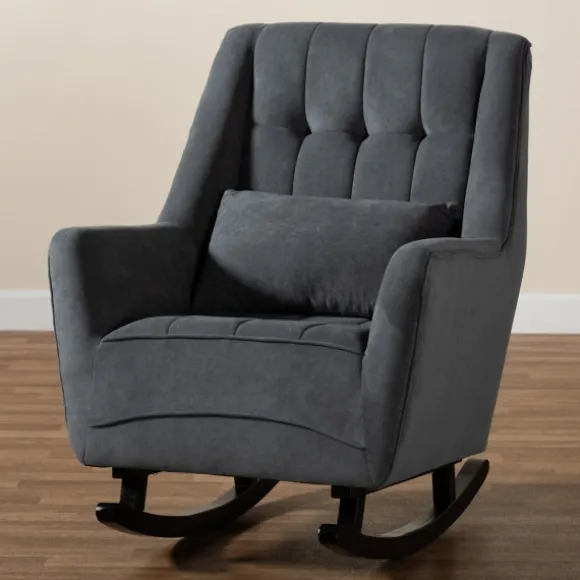 Who Said Comfort Can’T Be Stylish? Upholstered In A Luxe Fabric, Our Gray Velvet Biscuit Tufted Rocking Chair Is The Per…