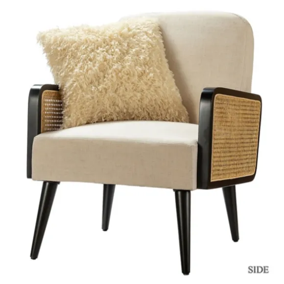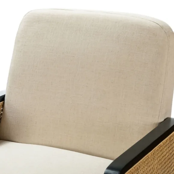 Give Your Living Room A Bold Element With This White Linen And Rattan Accent Chair. Its Eye-Catching, Mid-Century Modern Style Will Give Your Space A Nice Refresh. It Will Quickly Become Your Favorite Seat In The House! Chair Measures 25.4L X 29.1W X 32.7H In.; Seat Measures 17.5H In. Crafted Of Wood, Wood Composite, And Rattan Black Leg And Arm Finish Tan Rattan Finish Upholstered In White Linen With A High-Density Foam Fill Features Woven Rattan Arm Panels Mid-Century Modern Style Weight Capacity: 220 Lbs. Assembly Required Not Intended For Commercial Use Care: Spot Clean Only.This Item Is Available At Kirklands.Com Only, Not Available In Stores. Please Note: This Item Cannot Be Shipped To Apo/Fpo Addresses.