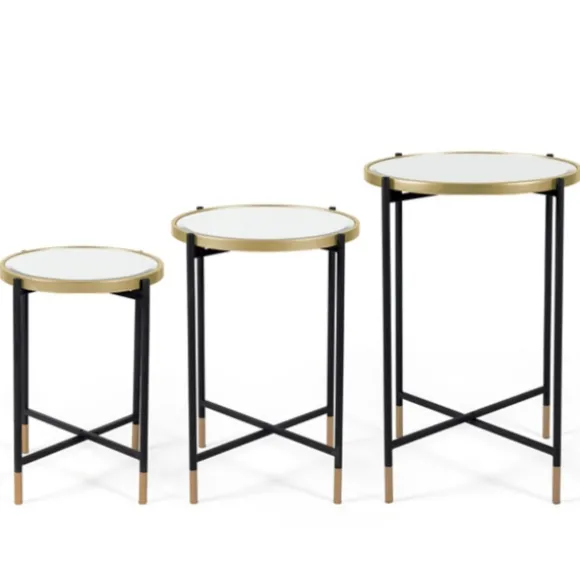 Bring A Touch Of Glam Into Your Space With These Anastasia Mirrored Metal Accent Tables. With Their Stunning Finish And Lovely Mirrored Tops, This Set Will Give Your Living Room An Updated And Cohesive Look! Set Includes Three (3) Accent Tableslarge Table Measures 27H X 18 In. In Diametermedium Table Measures 24H X 16 In. In Diametersmall Table Measures 20H X 14 In. In Diametercrafted Of Metal And Glassblack Finish With Gold Accentsbeveled Mirror Tabletopsround Shapeweight Capacity: 250 Lbs.No Assembly Requirednot Intended For Commercial Usecare: Dust With A Soft, Damp Cloth.This Item Is Available At Kirklands.Com Only, Not Available In Stores. Please Note: This Item Cannot Be Shipped To Apo/Fpo Addresses.