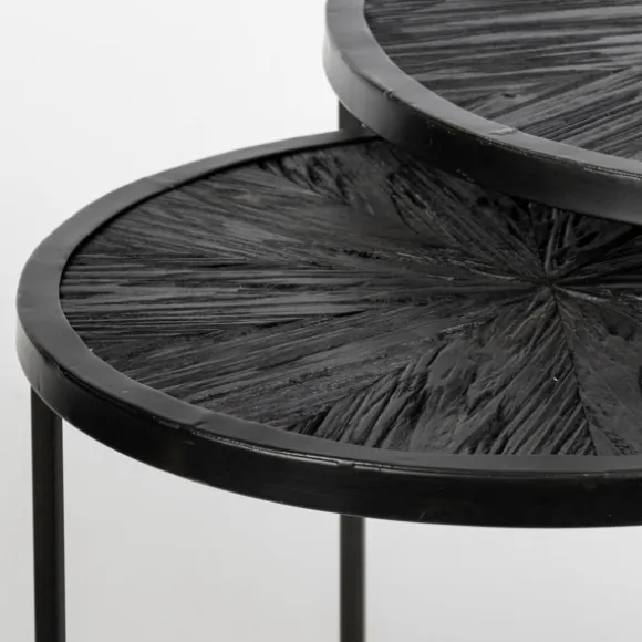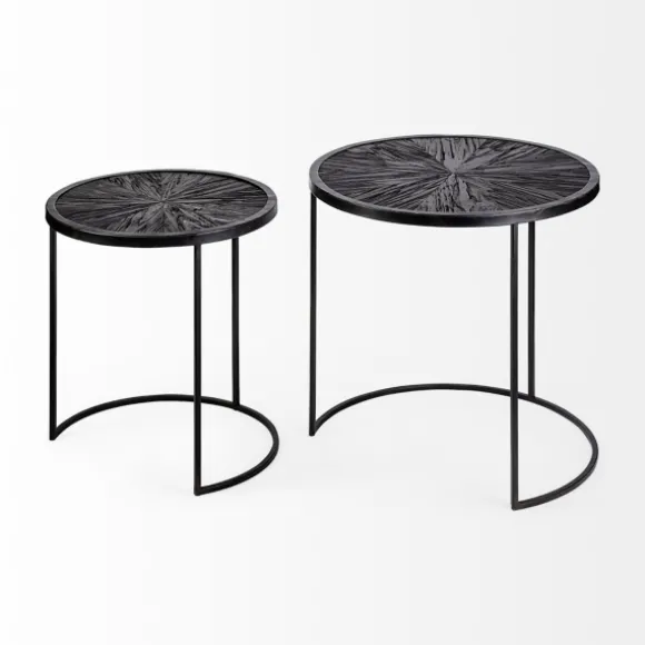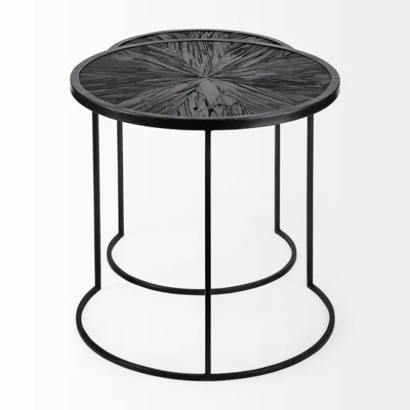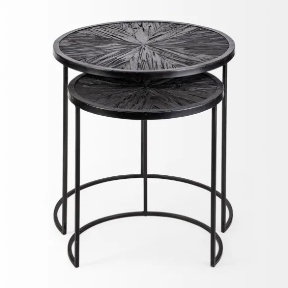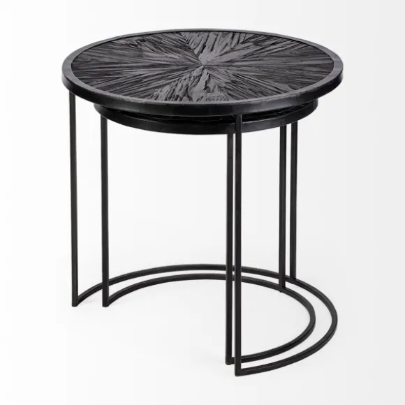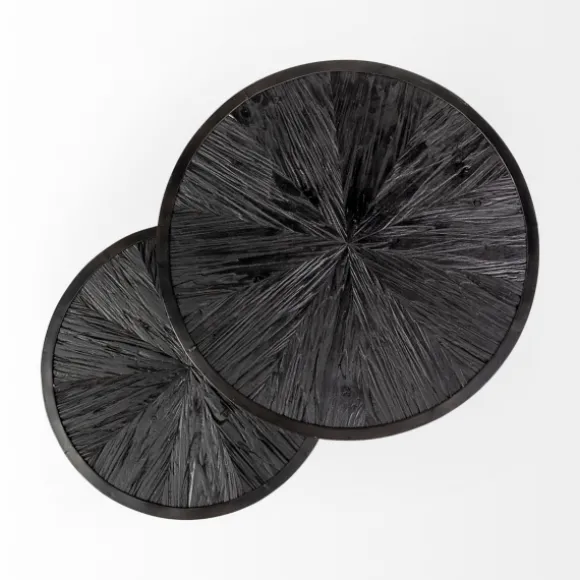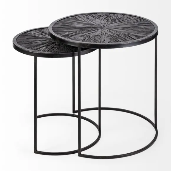 Complete The Look Of Your Living Room By Adding Plenty Of Stylish Tabletop Space! Featuring Textured Tops, Our Black Starburst Nesting Accent Tables Are Perfect For Your Modern Home. Set Includes Two (2) Tableslargest Table Measures 19.7H X 19.7 In. In Diametercrafted With Iron Frames And Wood Tabletopsblack Finishfeatures A Round, Nesting Designaccented With Starburst Tabletop Designscollective Weight Capacity: 75 Lbs.No Assembly Requirednot Intended For Commercial Usecare: Wipe With A Soft, Damp Cloth. Not Safe For Outdoor Use.This Item Is Available At Kirklands.Com Only, Not Available In Stores. Please Note: This Item Cannot Be Shipped To Apo/Fpo Addresses.
