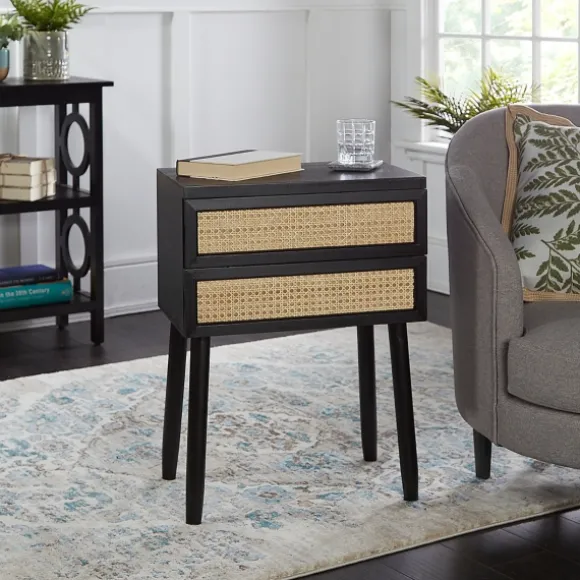 Kirkland’s Home Accent & End Tables-Black Two-Drawer Rattan Front Accent Table