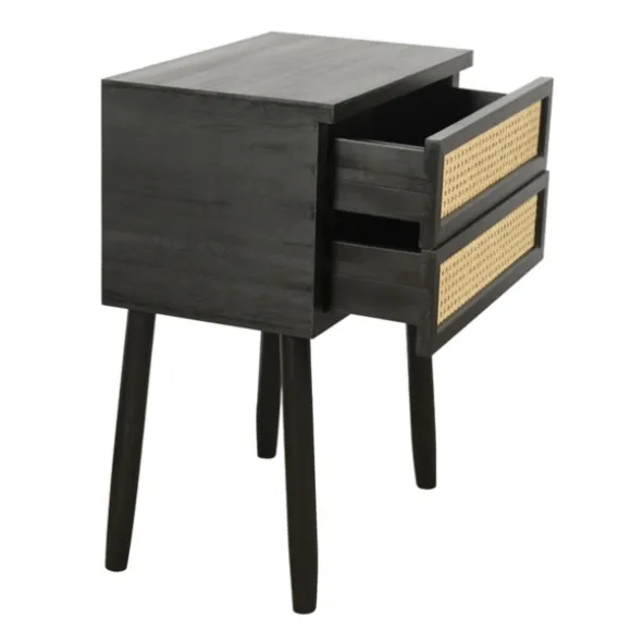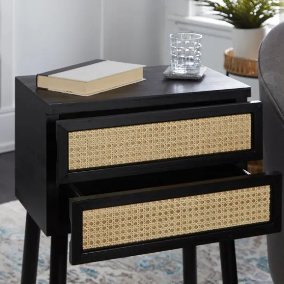 Add Some Sweet Extra Storage Space Next To Your Sofa Or Bed! Our Black Two-Drawer Rattan Front Accent Table Features A N…