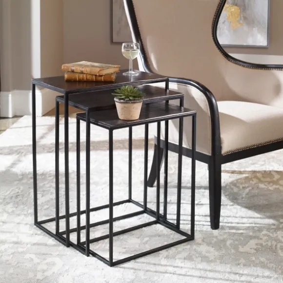 The Set Of Bronze & Black Metal Nesting Side Tables Will Bring Industrial Character To Your Space. Stack Them Together N…