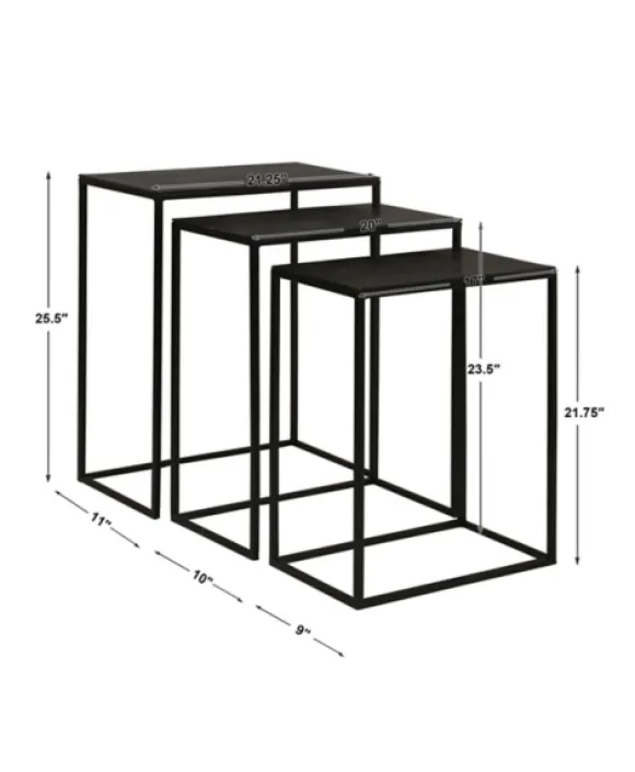 The Set Of Bronze & Black Metal Nesting Side Tables Will Bring Industrial Character To Your Space. Stack Them Together Next To An Armchair Or Separately Throughout Your Living Room! Set Includes Three (3) Side Tableslarge Table Measures 21.25L X 11W X 25.5H In.Medium Table Measures 20L X 10W X 23.5H In.Small Table Measures 17L X 9W X 21.75H In.Crafted Of 59% Iron And 41% Aluminumbronze Top Finishblack Base Finishnesting Designrectangular Shapeweight Capacity: 50 Lbs.No Assembly Requirednot Intended For Commercial Usecare: Dust With A Soft, Dry Cloth.This Item Is Available At Kirklands.Com Only, Not Available In Stores. Please Note: This Item Cannot Be Shipped To Apo/Fpo Addresses.Warning:This Product Can Expose You To Chemicals Including Nickel Which Is Known To The State Of California To Cause Cancer And Birth Defects Or Other Reproductive Harm.For More Information Go Towww.P65Warnings.Ca.Gov .
