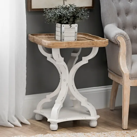 Our Corina Scalloped Accent Table Is A Unique Rustic Accent. Its Scalloped Natural Wood Tabletop Pairs Perfectly With Its Curved Leg Base Design. Use This Piece To Complement Your Modern Farmhouse Decor!Table Measures 19L X 19W X 25H In.Crafted Of Fir Wood And Wood Composite Distressed White Base Finishnatural Wood Tabletop Finishcurved Leg Designscalloped Square Tabletop With Rimsome Assembly Requirednot Intended For Commercial Usecare: Dust With A Soft, Dry Cloth.Contact Your Local Kirkland’S Store For Availability. Quantities And Selection May Vary By Location.