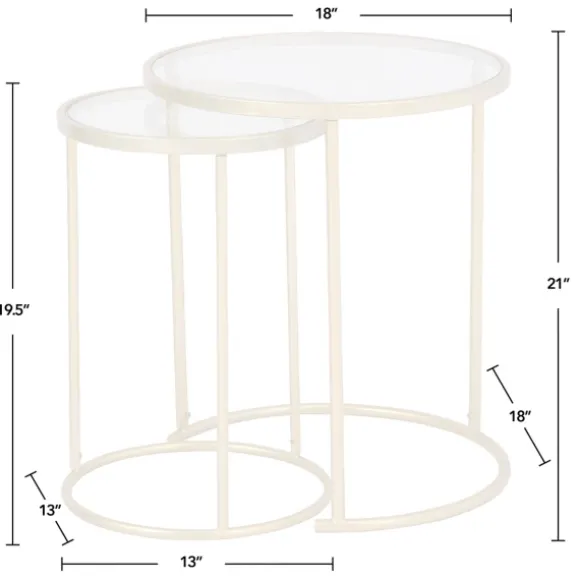 Bring Elegant Sophistication To Any Room In Your House With This Gold Metal And Glass Nesting 2-Pc Accent Table Set. These Tables Look Great Nestled Together Or Set Apart. You’Ll Love How Their Gold Finish Looks! Set Includes Two (2) Accent Tableslarge Table Measures 21H X 18 In. In Diametersmall Table Measures 19.5H X 13 In. In Diametercrafted Of Metal And Glassgold Metal Finishround Table Shapenesting Table Designfeatures A Glass Tabletopaccented With An Open Frameweight: 3.31 Lbs.Weight Capacity: 30 Lbs.Includes A 30-Day Limited Manufacturer Warrantyassembly Requirednot Intended For Commercial Usecare: Dust With A Soft, Dry Cloth.This Item Is Available At Kirklands.Com Only, Not Available In Stores. Please Note: This Item Cannot Be Shipped To Apo/Fpo Addresses.