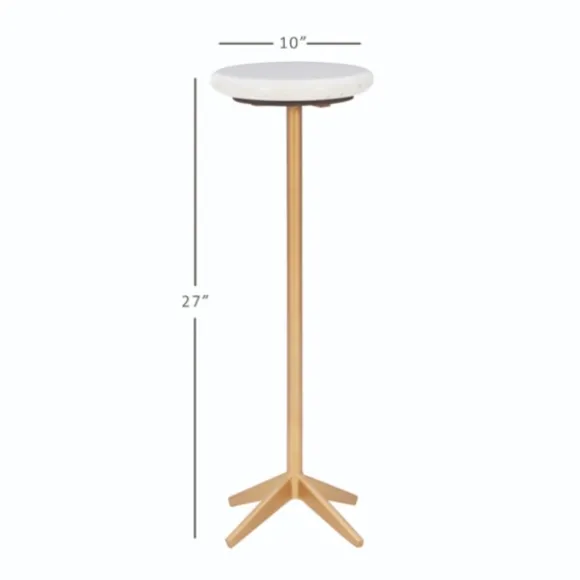 Set Down Your Wine Glasses And Mixed Drinks On This White Marble And Gold Base Cocktail Table! Perfect For Your Next Dinner Party, Its Compact Size Makes It Easy To Move Throughout Your Home! Table Measures 27H X 10 In. In Diametercrafted Of Marble And Metalwhite Marble Tabletop Finishgold Metal Finishround Shapefour Iron Feet Stabilized By Levelersweight Capacity: 20 Lbs.No Assembly Requirednot Intended For Commercial Usecare: Dust With A Soft, Dry Cloth.This Item Is Available At Kirklands.Com Only, Not Available In Stores. Please Note: This Item Cannot Be Shipped To Apo/Fpo Addresses.Warning:This Product Can Expose You To Chemicals Including Dehp Which Is Known To The State Of California To Cause Cancer And Birth Defects Or Other Reproductive Harm.For More Information Go Towww.P65Warnings.Ca.Gov .