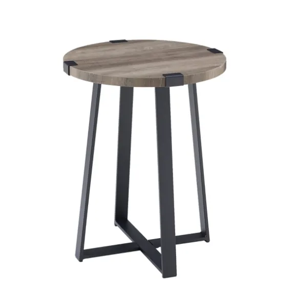 Add This Lovely Gray Urban Rustic Round Accent Table To Your Home Today! Your Accent Lamp And Potted Succulent Will Look Great Sitting On This Piece. This Is The Perfect Table For Especially Small Spaces.Accent Table Measures 22H X 18 In. In Diameter Crafted Of Warp-Resistant Wood Composite, Durable Laminate, And Powder-Coated Metal Gray Table Top Finish Black Base Finish Round Table Top Shape Natural, Wood Grain Details Durable, Laminate Table Top Four (4) Metal Legs Form The Cross Base Design Metal Legs Wrap Around Table Top Full Assembly Required Not Intended For Commercial Use Care: Dust With A Soft, Dry Cloth.This Item Is Available At Kirklands.Com Only, Not Available In Stores. Please Note: This Item Cannot Be Shipped To Apo/Fpo Addresses.