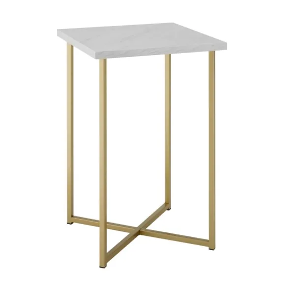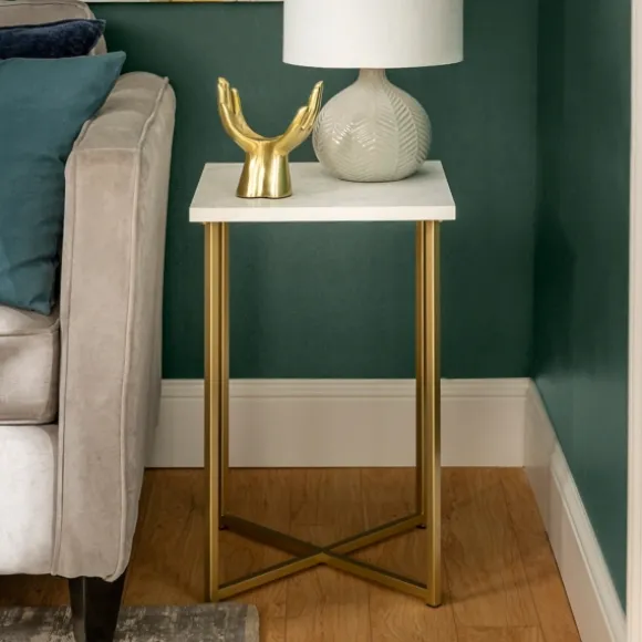 Tie Your Modern Glam Aesthetic Together With This White Faux Marble And Gold X-Base Accent Table! You’Ll Love How It Stylishly Displays Your Bedroom Or Living Room Decor. Table Measures 16L X 16W X 24H In.Crafted Of Metal, Laminate, And Wood Compositewhite Faux Marble Top Finishgold Chrome Metal Leg Finishx-Basesquare Shaped Tabletopweight Capacity: 75 Lbs.Assembly Requirednot Intended For Commercial Usecare: Dust With A Soft, Dry Cloth.This Item Is Available At Kirklands.Com Only, Not Available In Stores. Please Note: This Item Cannot Be Shipped To Apo/Fpo Addresses.