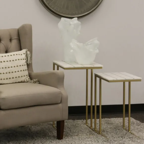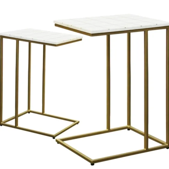 Add A Touch Of Elegance To Your Space With These White Marble And Gold Grid Accent Tables. Their Grid Top Design And Nesting Style Make Them One-Of-A-Kind Pieces. You’Ll Love How The Gold Accents Tie Everything Together. Set Includes Two (2) Accent Tableslarge Table Measures 14L X 18W X 26H In.Small Table Measures 11.75L X 15.75W X 22H In.Crafted Of Metal And Marble Tile Matte Gold Framewhite Marble Top With A Gold Grid Designnesting C Shapeweight Capacity: 40 Lbs.Not Intended For Commercial Usecare: Dust With A Soft, Dry Cloth.This Item Is Available At Kirklands.Com Only, Not Available In Stores. Please Note: This Item Cannot Be Shipped To Apo/Fpo Addresses.Warning:Cancer And Reproductive Harm – For More Information Go Towww.P65Warnings.Ca.Gov .
