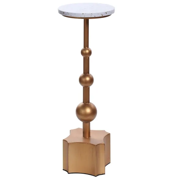 The White Terrazzo Top And Gold Base Accent Table Will Give Your Favorite Cocktail A Stylish Place To Sit! Featuring An Orb-Shaped Base, Two Tone Finish, And Scalloped Details, This Table Has A Glam Look That You’Ll Love. Table Measures 24H X 8 In. In Diametercrafted Of Metal And Stonegold Base Finishwhite Terrazzo Table Top Finish With Multicolored Flecksround Shapeorb-Shaped Pedestal Shapescalloped Details On Baseweight Capacity: 50 Lbs.No Assembly Requirednot Intended For Commercial Usecare: Dust With A Soft, Dry Cloth.This Item Is Available At Kirklands.Com Only, Not Available In Stores. Please Note: This Item Cannot Be Shipped To Apo/Fpo Addresses.