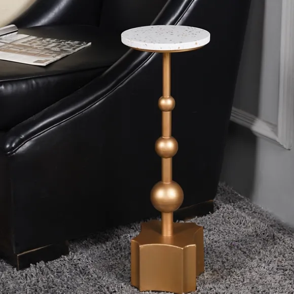 The White Terrazzo Top And Gold Base Accent Table Will Give Your Favorite Cocktail A Stylish Place To Sit! Featuring An …