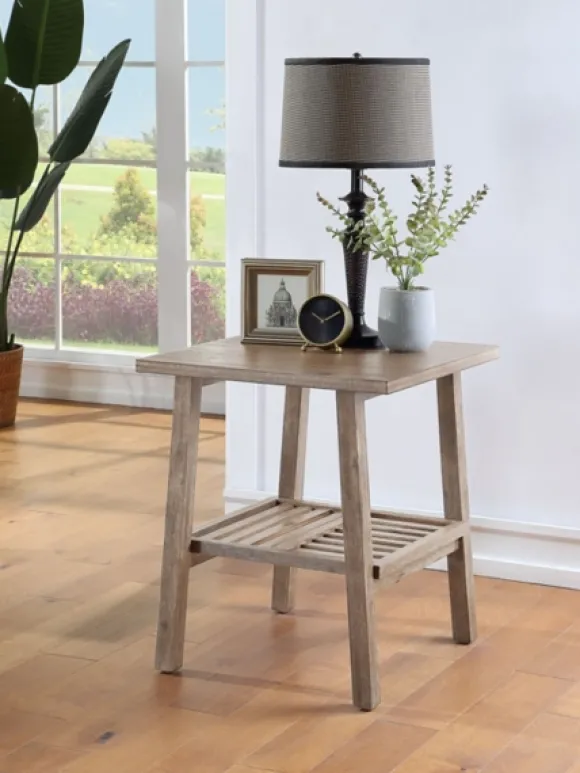 Show Off Your Love Of Farmhouse Decor With This Wire Brushed Natural Accent Table. Its Slatted Bottom Shelf Provides The Additional Storage You’Ve Been Looking For. You’Ll Love How Its Rustic Finish Looks In Any Space In Your Home! Table Measures 22.25L X 22.25W X 24.25H In.Crafted Of Rubberwoodwire-Brushed Natural Finishsquare Table Designfeatures An Open Slatted Shelfweight: 18.25 Lbs.Assembly Requirednot Intended For Commercial Usecare: Wipe Clean With A Damp Cloth. Please Use A Coaster Or Mat If Placing Hot Or Wet Food/Drinks On Item To Limit Any Potential Damages.This Item Is Available At Kirklands.Com Only, Not Available In Stores. Please Note: This Item Cannot Be Shipped To Apo/Fpo Addresses.Warning:This Product Can Expose You To Chemicals Including Sawdust Which Is Known To The State Of California To Cause Cancer And Birth Defects Or Other Reproductive Harm.For More Information Go Towww.P65Warnings.Ca.Gov .