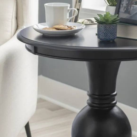 Our Black Wood Round Base Side Table Looks Lovely In Any Style Space! You’Ll Love The Unique, Eye-Catching Round Base Of This Wooden Accent Table. Table Measures 26L X 26W X 26H In.Crafted Of Wood And Wood Compositeblack Finishround Tabletopfeatures Stepped Base And Turned Pedestal Designweight: 32.4 Lbs.Weight Capacity: 100 Lbs.Some Assembly Requirednot Intended For Commercial Usecare: Dust With A Soft, Dry Cloth.This Item Is Available At Kirklands.Com Only, Not Available In Stores. Please Note: This Item Cannot Be Shipped To Apo/Fpo Addresses.