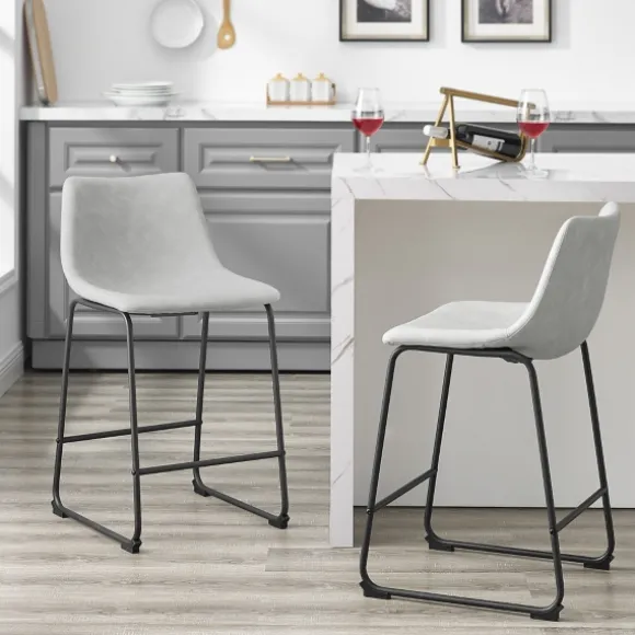 Dine In Style With Our Stunning Set Of Gray Faux Leather Counter Stools. Modern And Traditional Styles Come Together Beautifully In These Dining Chairs. Set Includes Two (2) Counter Stools Each Counter Stool Measures 21L X 15W X 40H In. Crafted Of Faux Leather And Metal Gray Finish Features Curved And Comfortable Seat Industrial Style Design Weight: 36 Lbs. Full Assembly Required Not Intended For Commercial Use Care: Dust With A Soft, Dry Cloth.This Item Is Available At Kirklands.Com Only, Not Available In Stores. Please Note: This Item Cannot Be Shipped To Apo/Fpo Addresses. Warning:Cancer And Reproductive Harm – For More Information Go Towww.P65Warnings.Ca.Gov .