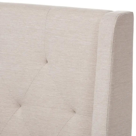 Kirkland’s Home Beds & Headboards-Beige Upholstered Wingback Queen Platform Bed