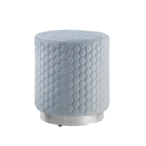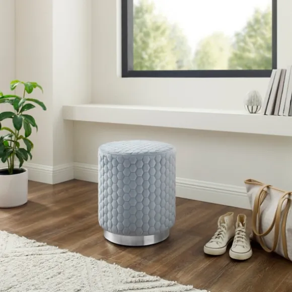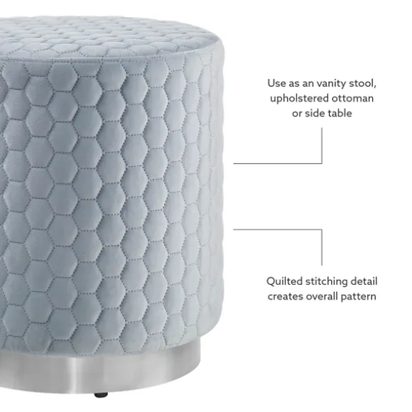 Put Your Feet Up And Relax In Style With The Help Of This Blue Quilted Honeycomb Ottoman! With A Tufted Texture And Blue-Gray Color, This Is The Perfect Comfy Accent For Your Modern Space. Ottoman Measures 16.5H X 14.1 In. In Diameterframe Crafted Of Solid Wood And Metalupholstered In 100% Polyester Velvetblue-Gray Upholstery Finish With A Silver Basefeatures A Quilted Honeycomb Designweight Capacity: 200 Lbs.No Assembly Requirednot Intended For Commercial Usespot Clean Only. Not Safe For Outdoor Use.This Item Is Available At Kirklands.Com Only, Not Available In Stores. Please Note: This Item Cannot Be Shipped To Apo/Fpo Addresses.Warning:This Product Can Expose You To Chemicals Including Dehp Which Is Known To The State Of California To Cause Cancer And Birth Defects Or Other Reproductive Harm.For More Information Go Towww.P65Warnings.Ca.Gov .