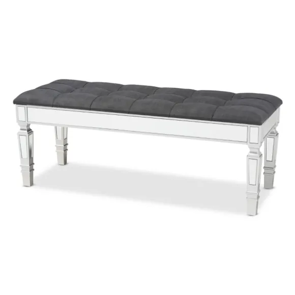 The Gray Button Tufted Bench With Mirrored Base Is Sure To Give Your Lounge Space A Luxurious Look. It Will Perfectly Co…
