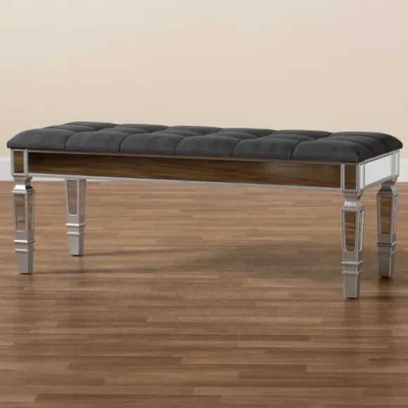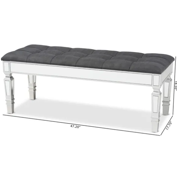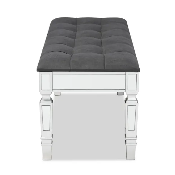 The Gray Button Tufted Bench With Mirrored Base Is Sure To Give Your Lounge Space A Luxurious Look. It Will Perfectly Complement Any Modern Glam Home Aesthetic. Bench Measures 47.2L X 17.7W X 18.5H In.Crafted With A Wood Composite And Fir Wood Framesilver Base Finishmirrored Glass Accentsupholstered In A Gray Polyester Fabric With Foam Fillbutton Tufted Designassembly Requirednot Intended For Commercial Usecare: Spot Clean Only.This Item Is Available At Kirklands.Com Only, Not Available In Stores. Please Note: This Item Cannot Be Shipped To Apo/Fpo Addresses.Warning:This Product Can Expose You To Chemicals Including Formaldehyde And Phthalate Which Is Known To The State Of California To Cause Cancer And Birth Defects Or Other Reproductive Harm.