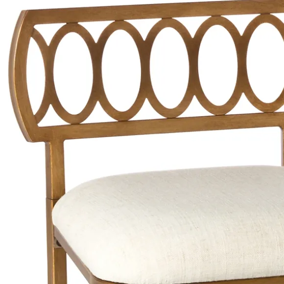 A Flowing Oval Ring Back Design Differentiates This Canal Street Vanity Stool. You’Ll Love The Elegance Brought On By Its Golden Bronze Metal Finish!Stool Measures 17L X 17W X 26H In. Crafted With A Metal Frame Golden Bronze Frame Finish Flowing Oval Ring Back Design Seat Upholstered In A White Woven Fabric Some Assembly Required Not Intended For Commercial Use Care: Spot Clean Only.This Item Is Available At Kirklands.Com Only, Not Available In Stores. Please Note: This Item Cannot Be Shipped To Apo/Fpo Addresses.