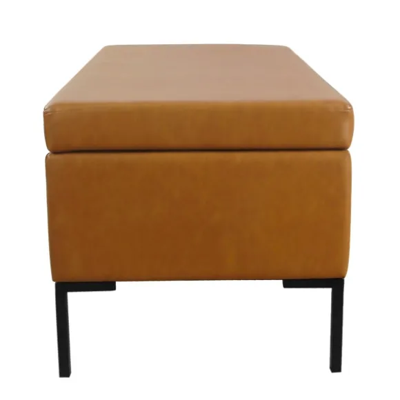 Add An Element Of Convenience And Style To Your Modern Farmhouse Mudroom! Our Caramel Vegan Leather Storage Bench Features A Classy Design And Ample Interior Space. Bench Measures 42L X 20W X 18.5H In.Crafted With A Metal Frameupholstered In Vegan Leather With A Foam Fillcaramel Brown Finish With Matte Black Legshinged Bench Top Lifts To Reveal Storage Spaceweight Capacity: 250 Lbs.Some Assembly Requirednot Intended For Commercial Usecare: Spot Clean Only. Not Safe For Outdoor Use.This Item Is Available At Kirklands.Com Only, Not Available In Stores. Please Note: This Item Cannot Be Shipped To Apo/Fpo Addresses.