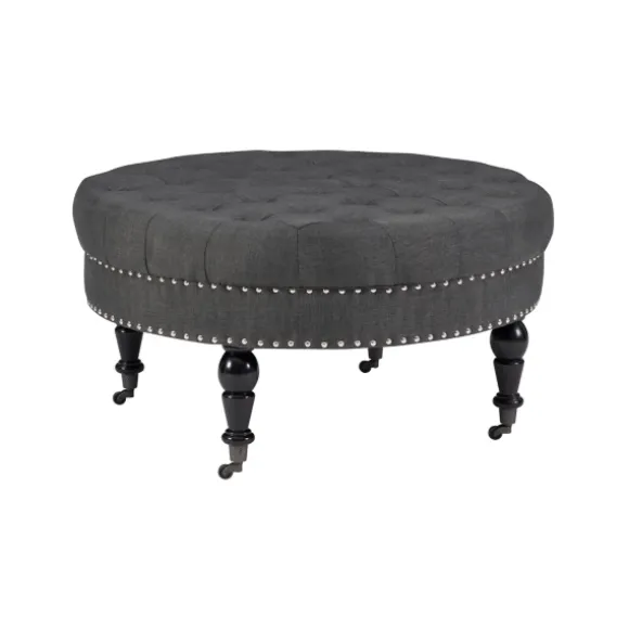 Add Some Ornate Flair To Your Decor With This Charlotte Tufted Round Charcoal Ottoman! You’Ll Love The Nailhead Trim And Button Tufted Details On This Piece.Ottoman Measures 18.13H X 34.6 In. In Diameter Crafted With A Wood Frame Charcoal Linen Upholstery Black Ornate Finish Legs Round Shape Button Tufted Top Features Silver Nailhead Side Details Has Caster Bottoms Of Legs For Easy Moving Some Assembly Requiredweight Capacity: 275 Lbs. Not Intended For Commercial Usecare: Wipe Clean With A Dry Cloth. This Item Is Available At Kirklands.Com Only, Not Available In Stores. Please Note: This Item Cannot Be Shipped To Apo/Fpo Addresses. Warning:This Product Can Expose You To Chemicals Including Di-(2-Ethl Hexyl) Phthalate Which Is Known To The State Of California To Cause Cancer And Birth Defects Or Other Reproductive Harm. For More Information Go Towww.P65Warnings.Ca.Gov .