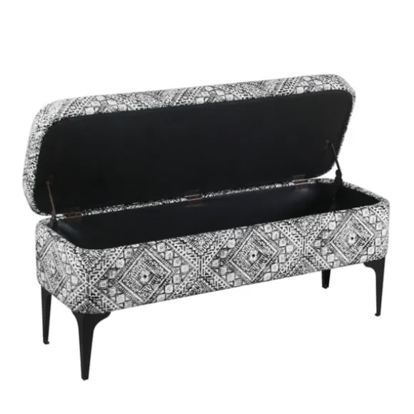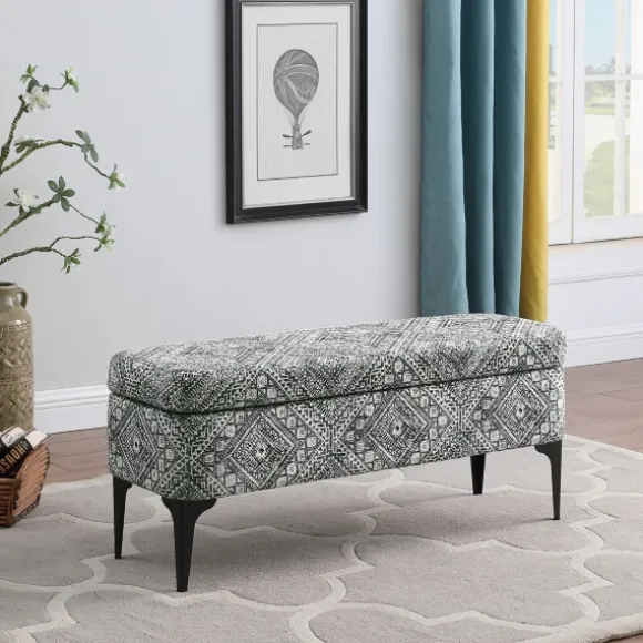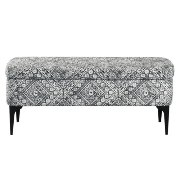 Our Chinle Velvet Storage Bench Is The Perfect Way To Add Some Extra Seating And Style To Any Space! You’Ll Love Keeping Extra Pillows Or Blankets Inside This Fun Patterned Piece. Bench Measures 42L X 14.5W X 17.5H In.Crafted With A Metal Frameupholstered In 100% Polyester Velvet Fabric With A Foam Fillmatte Black Leg Finishfeatures A Chinle-Inspired Patternhues Of Black, White, And Grayhinged Bench Top Lifts To Reveal Storage Spaceweight Capacity: 250 Lbs.Some Assembly Requirednot Intended For Commercial Usecare: Spot Clean Only. Not Safe For Outdoor Use.This Item Is Available At Kirklands.Com Only, Not Available In Stores. Please Note: This Item Cannot Be Shipped To Apo/Fpo Addresses.