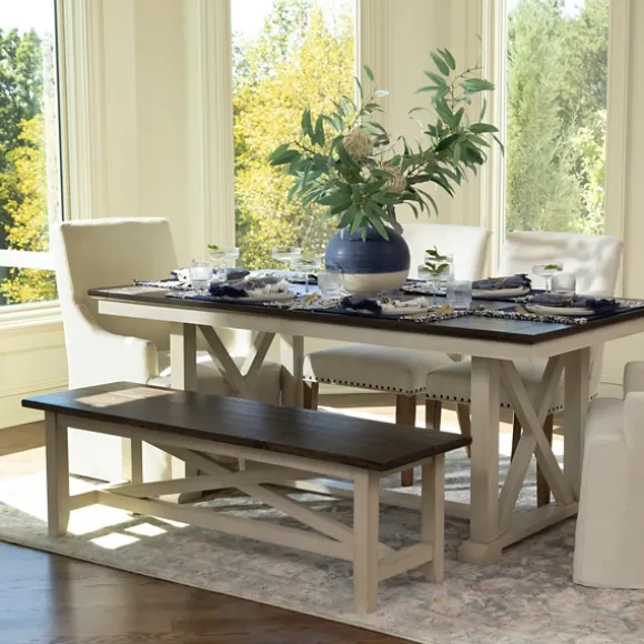 Bring Some Rustic Farmhouse Flair To Your Space Of Gathering With Our Dark Brown And Ivory Jackson Dining Bench! You’Ll Love The Mix Of Brown And Ivory Finish On This Bench.Dining Bench Measures 58L X 17W X 18H In.Crafted Of Solid Pinewooddark Brown Seat Finishivory Legand Frame Finishfeatures An X-Back Detailing Weight: 39.6 Lbs.Weight Capacity: 300 Lbs.Some Assembly Requirednot Intended For Commercial Usecare: Dust With A Soft, Dry Cloth.Contact Your Local Kirkland’S Store For Availability. Quantities And Selection May Vary By Location.
