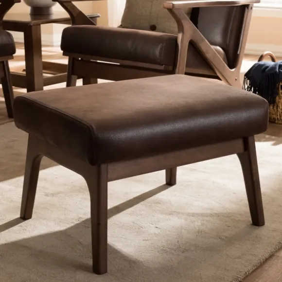 This Cozy Ottoman Is The Perfect Seating Or Decoration Option For A Stylish Room. The Dark Walnut Leather Ottoman Will Add A Welcoming Feeling To Your Living Space And A Stylish Look To Your Home. Ottoman Measures 22.64L X 18.5W X 15.35H In.; Seat Height Measures 15.35H In. Crafted Of Wood, Foam, And Polyester Walnut Wood Finishupholstered In Brown Faux Leatherretro Design Assembly Required Weight Capacity: 190 Lbs. Not Intended For Commercial Use Care: Wipe With A Damp Cloth, Either With Or Without A Small Amount Of Mild Soap. Wipe Dry.This Item Is Available At Kirklands.Com Only, Not Available In Stores. Please Note: This Item Cannot Be Shipped To Apo/Fpo Addresses. Warning:This Product Can Expose You To Chemicals Including Formaldehyde Phthalate Which Is Known To The State Of California To Cause Cancer And Birth Defects Or Other Reproductive Harm. For More Information Go Towww.P65Warnings.Ca.Gov .