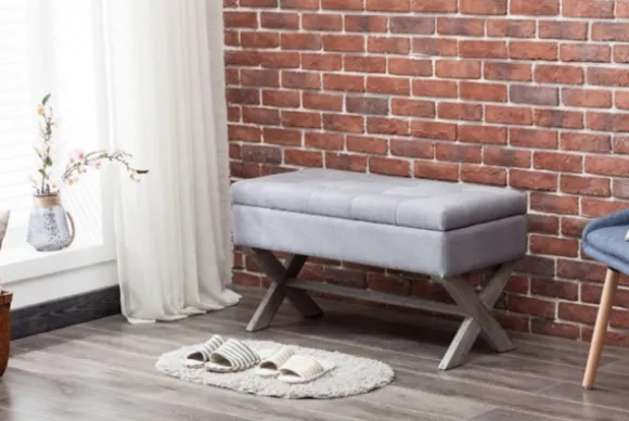 Fashion And Function Come Together Beautifully With Our Light Gray Button Tufted Storage Cross Leg Bench. You’Ll Love Th…