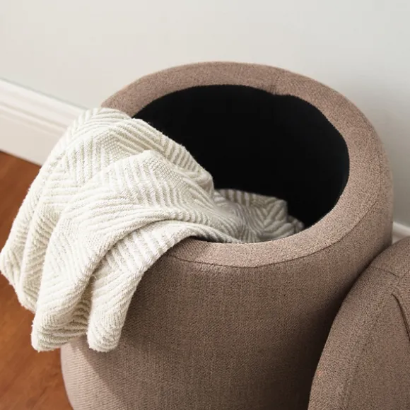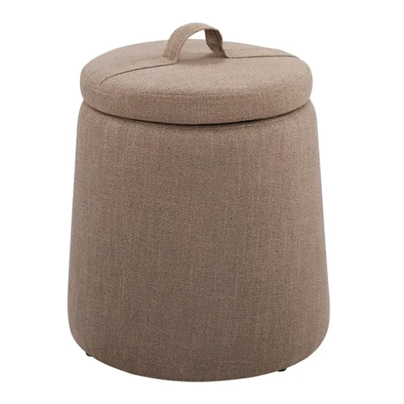 The Light Brown Upholstered Top Handle Storage Ottoman Is A Must-Have For Any Small Space. Serving As An Adorable Seat Or Footrest, It Also Stylishly Stores Blankets, Books, And More! Ottoman Measures 16H X 15 In. In Diametercrafted Of Plywood, Polyester, And Foamupholstered In A Light Brown Polyester Fabric With Foam Paddingtapered Shaperemovable Lid Reveals Storage Spacelid Features Top Handleseat Weight Capacity: 225 Lbs.Storage Weight Capacity: 20 Lbs.No Assembly Requirednot Intended For Commercial Usecare: Spot Clean Only.This Item Is Available At Kirklands.Com Only, Not Available In Stores. Please Note: This Item Cannot Be Shipped To Apo/Fpo Addresses.Warning:This Product Can Expose You To Chemicals Including Dehp Which Is Known To The State Of California To Cause Cancer And Birth Defects Or Other Reproductive Harm.For More Information Go Towww.P65Warnings.Ca.Gov .