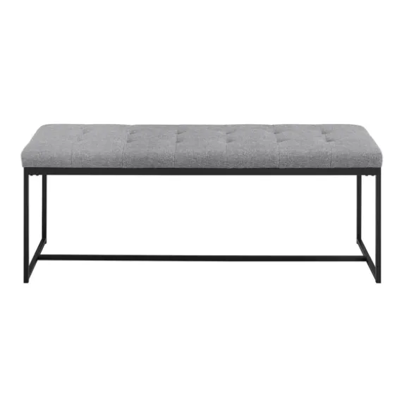 Our Gray Linen Tufted Bench Is The Picture Of Modern Elegance With Its Sleek Metal Base And Tufted Upholstery. Whether At The End Of Your Bed Or As A Entryway Feature, This Accent Bench Will Be Sure To Complement A Variety Of Contemporary Decor Styles.Bench Measures 48L X 16W X 18H In. Crafted Of Linen With A Metal Frame Black Leg Finish Seat Upholstered In Gray Linen Button Tufted Top Accents Mid-Century Modern Design Full Assembly Required Not Intended For Commercial Use Care: Dust With A Soft, Dry Cloth.This Item Is Available At Kirklands.Com Only, Not Available In Stores. Please Note: This Item Cannot Be Shipped To Apo/Fpo Addresses.