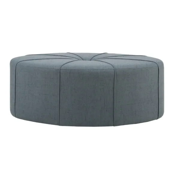 Add Some Luxury To Your Space With Our Blue Thick Welting Center Button Oval Ottoman. The Lavish Thick Welting And Butto…